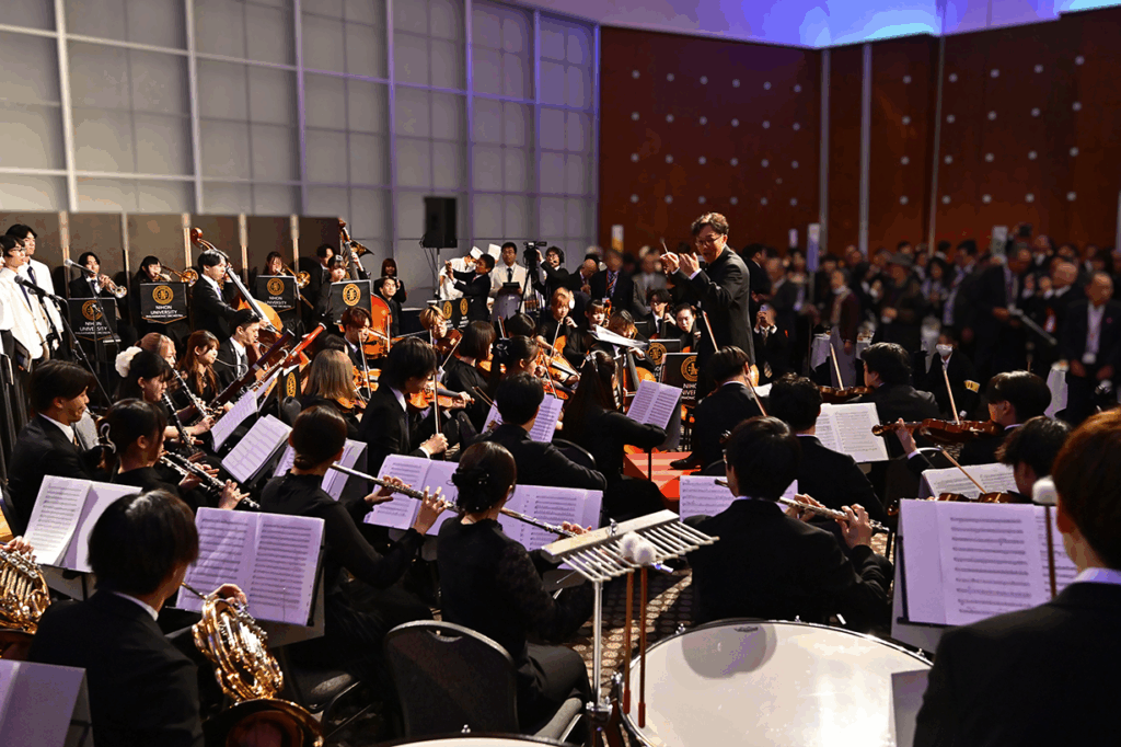 11月7日、令和7年度 日本大学全国校友大会が東京ドームホテルにおいて開催され、本団は日本大学芸術学部校友会の皆さまからご招待いただき演奏を披露いたしました。