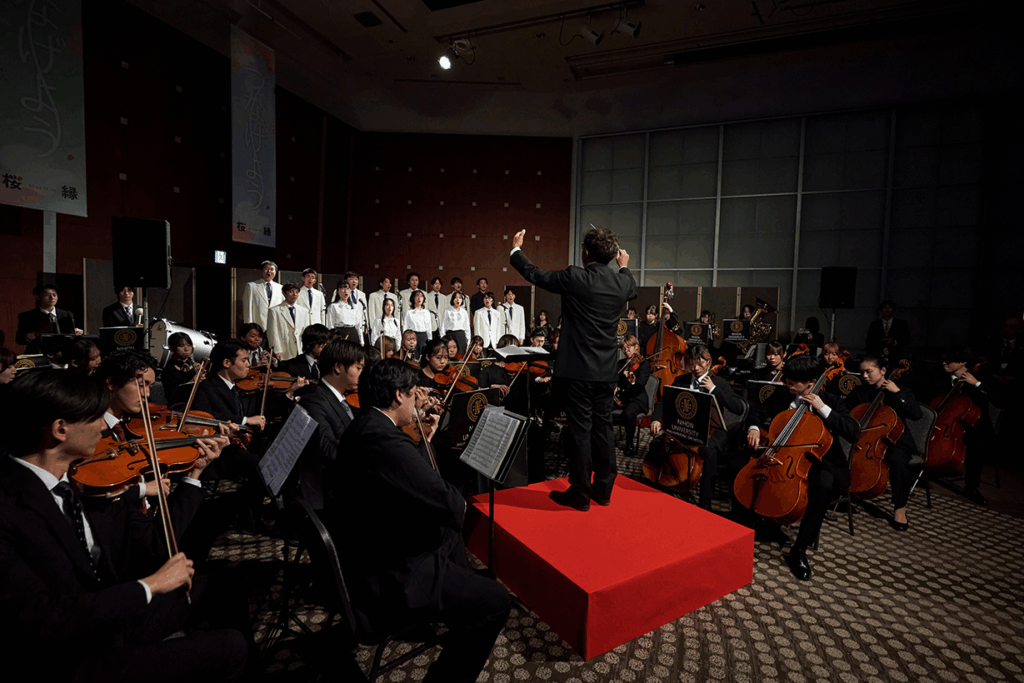 冒頭、日本大学合唱団の皆さまとともに日本大学校歌を演奏したのち、アトラクションとしてヴェルディ/歌劇「ナブッコ」より序曲、ヘンデル/オラトリオ『メサイア』より「ハレルヤ・コーラス」を演奏いたしました。